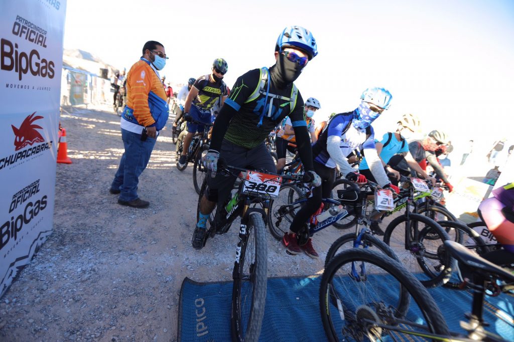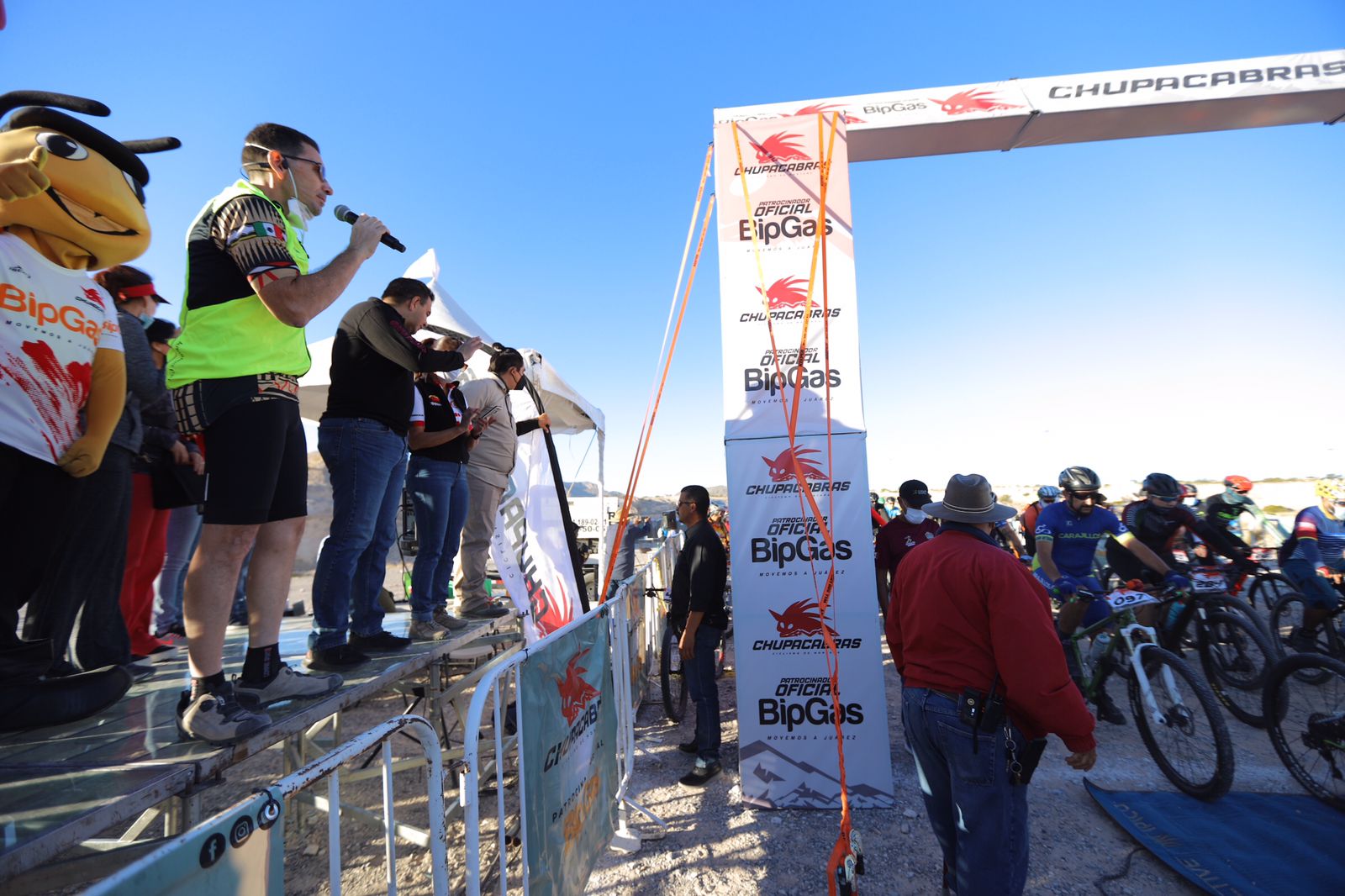 Ciudad Juárez, Chihuahua.- El Presidente Municipal Cruz Pérez Cuéllar, dio el banderazo de salida a los ciclistas que participan en la tradicional Carrera Chupacabras 2021, que se lleva a cabo este domingo en la pista de Don Rayo, al poniente de la ciudad.