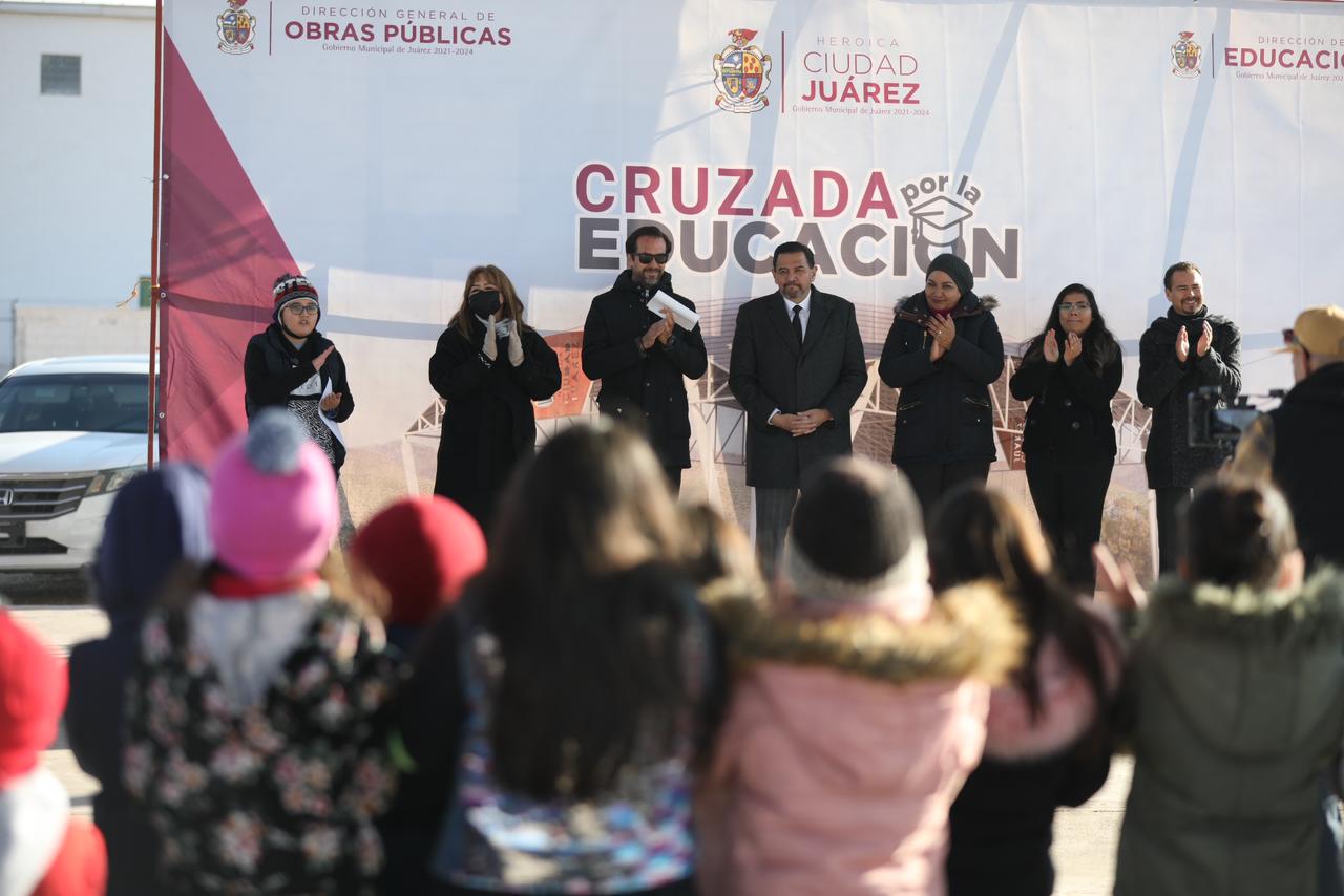 El Alcalde, puntualizó que se trata del domo número cuatro de los 65 que serán construidos y entregados por el Gobierno Municipal, afirmo que le apuesta a la educación pública para ayudar a los juarenses a salir adelante.