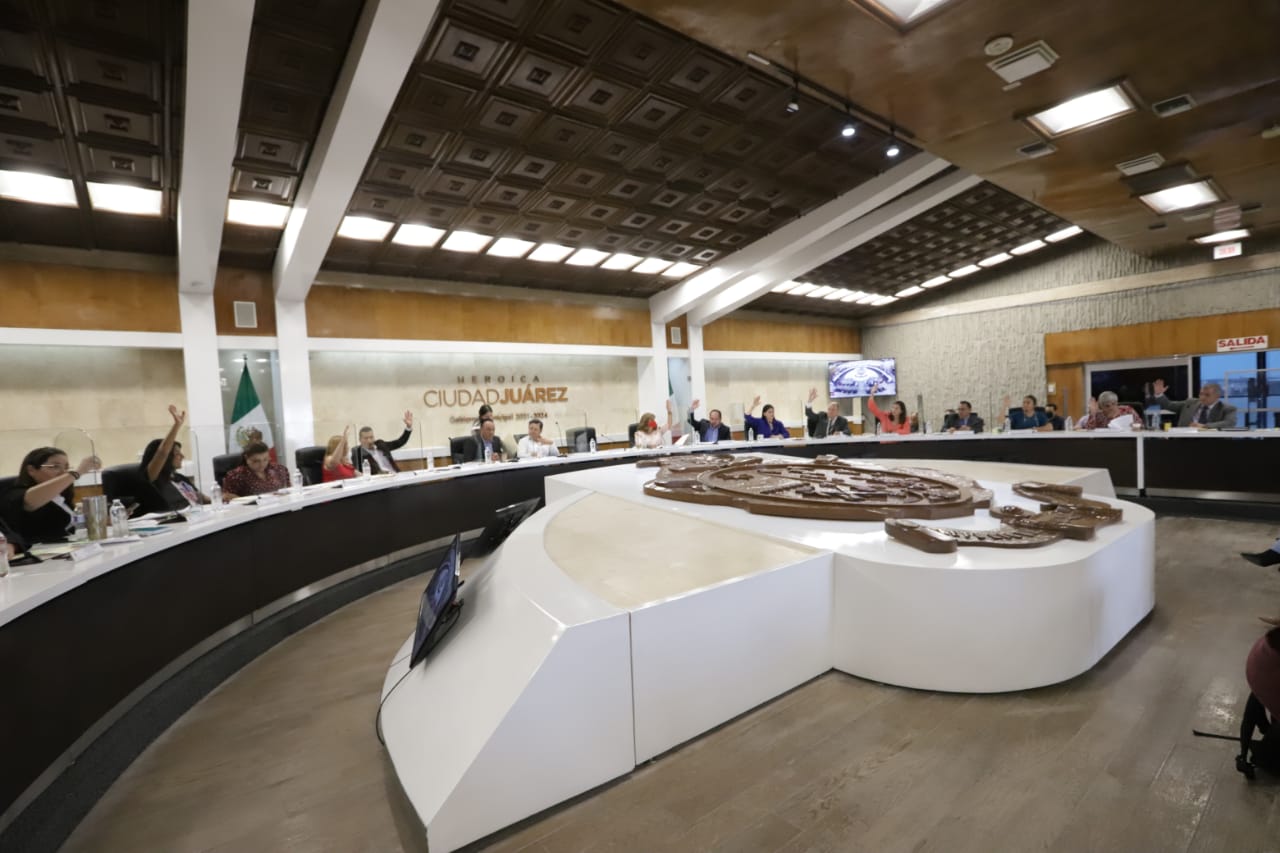 Ciudad Juárez, Chihuahua.- El Cabildo de Ciudad Juárez, analizaron este día 21 asuntos en el orden del día que serán sometidos a votación el próximo miércoles en la sesión de Cabildo, entre los que se encuentran la asignación de 96 millones de pesos provenientes de recursos extraordinarios a obras y programas de la administración municipal; becas para hijos de bomberos, propuestas de reformas a reglamentos municipales y un donativo a una escuela.
