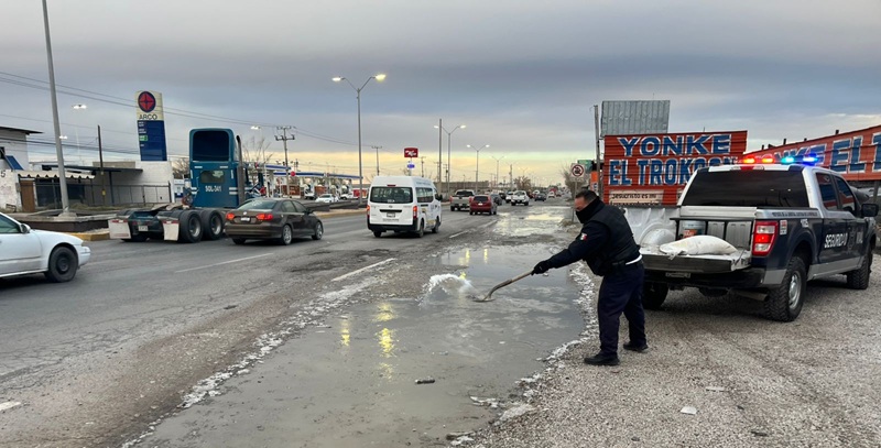 Ciudad Juarez, Chihuahua – Ante la posibilidad de que por las bajas temperaturas se pudieran dar casos de cristalización de las calles, agentes de la Coordinación General de Seguridad Vial se preparan para esparcir sal y arena sobre las vialidades en las que se registre ese problema, con el fin de evitar cualquier tipo de incidentes.