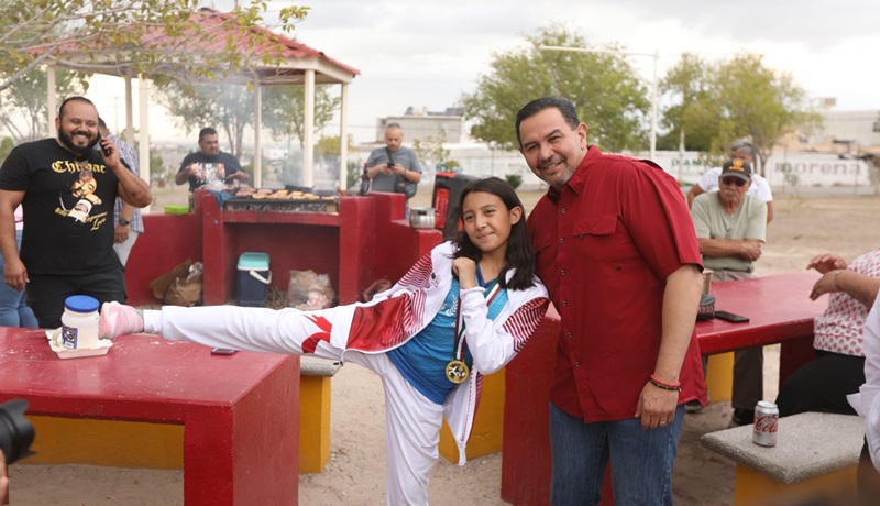 Ciudad Juarez, Chihuahua – El Presidente Municipal, Cruz Pérez Cuéllar, acudió a una hamburguesada en beneficio de Meredith Fernanda Quintero Morales, de 11 años de edad, quien irá al concurso internacional de Taekwondo en Colombia.
