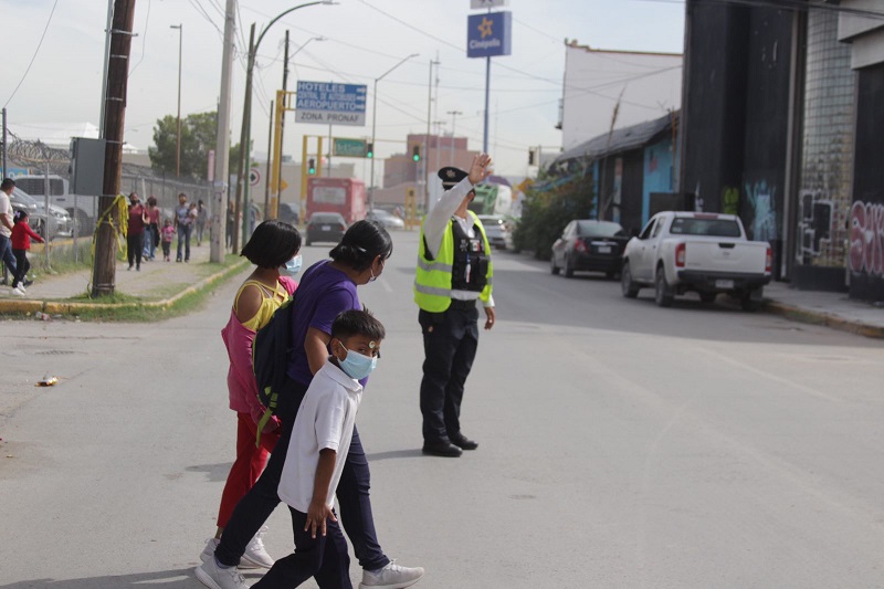 En un horario de las 08:00 a las 14:00 horas, los elementos que se encuentran desplegados en los mencionados puntos, orientan a conductores y peatones, con el fin de darle una mayor fluidez al tráfico automovilístico y prevenir algún percance vial.