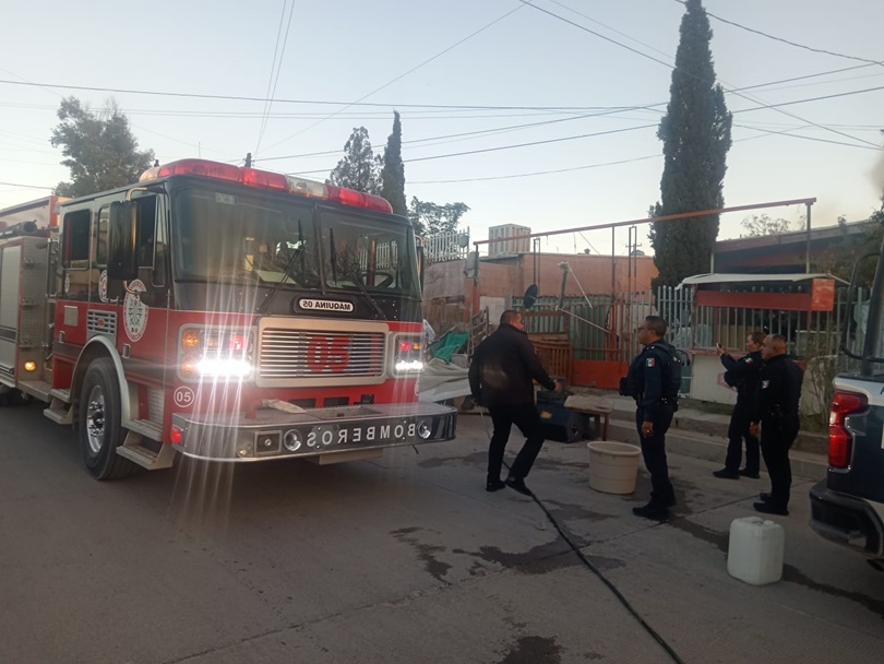 Al arribar al lugar del reporte, los oficiales junto con vecinos que ya habían iniciado esfuerzos para controlar las llamas, colaboraron para evitar que el fuego se propagara a casas aledañas mientras llegaba la unidad de bomberos.