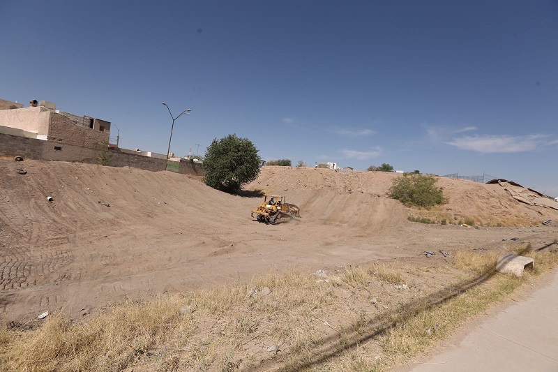 Ciudad Juárez, Chihuahua – Este día la Dirección General de Obras Públicas inició los trabajos de limpieza y mantenimiento del dique que se encuentra en el fraccionamiento La Cañada, como parte de las acciones para mantener la infraestructura pluvial de la ciudad en buenas condiciones.