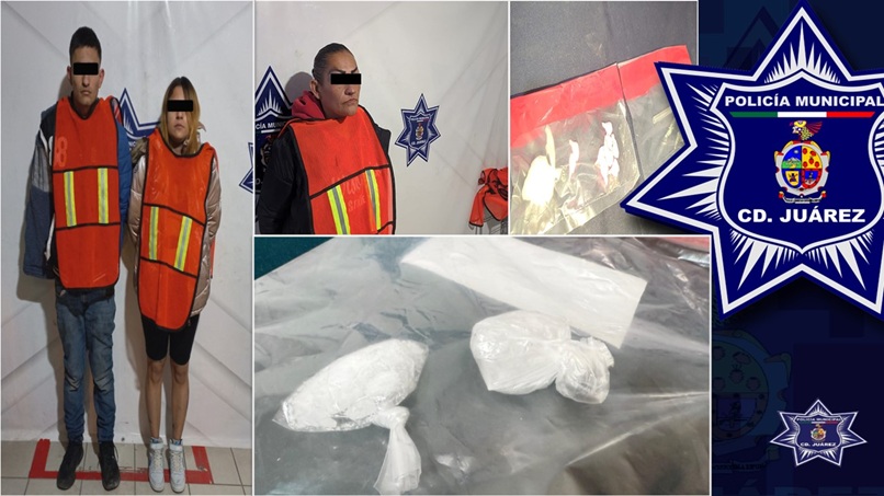 Ciudad Juarez, Chihuahua – Elementos de la Secretaría de Seguridad Pública Municipal arrestaron a dos personas, por su presunta responsabilidad en la comisión de delitos contra la salud en su modalidad de narcomenudeo.