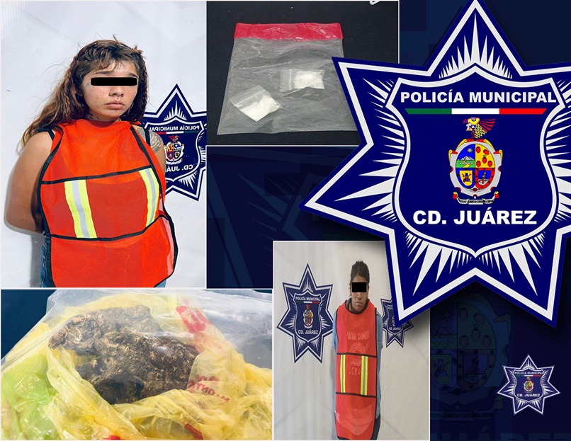 Ciudad Juarez, Chihuahua – Elementos de la Secretaría de Seguridad Pública Municipal arrestaron a dos personas, por su presunta responsabilidad en la comisión de delitos contra la salud en su modalidad de narcomenudeo.