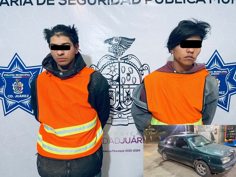 Ciudad Juárez, Chihuahua – Elementos de la Secretaría de Seguridad Pública Municipal arrestaron a Jonathan Daniel G. C. y Adrián G. T., por su presunta responsabilidad en la comisión del delito de posesión de vehículo con reporte de robo.