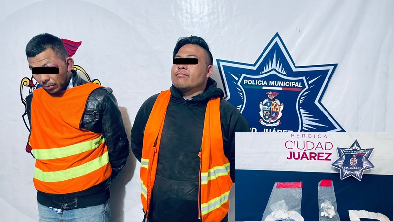 Ciudad Juarez, Chihuahua – Elementos de la Secretaría de Seguridad Pública Municipal arrestaron a Carlos G. M. y Martín M. R., por su presunta responsabilidad en la comisión de delitos contra la salud, mismos que serán investigados por robo de vehículo.