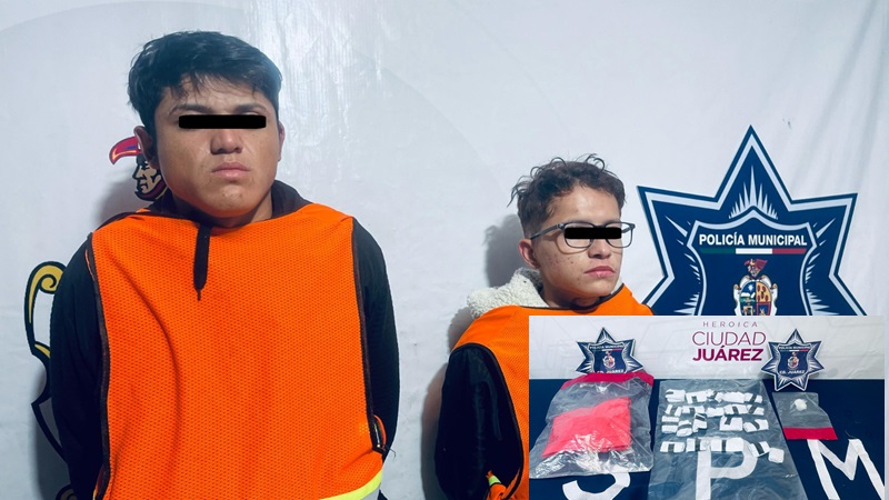 Ciudad Juarez, Chihuahua – Elementos de la Secretaría de Seguridad Pública Municipal arrestaron a William L. P. y Víctor M. G., por su presunta responsabilidad en la comisión de delitos contra la salud en su modalidad de narcomenudeo.