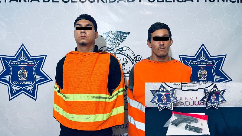 Ciudad Juárez, Chihuahua – Elementos de la Secretaría de Seguridad Pública Municipal arrestaron a Emmanuel V. M. y Alfonso M. T., por su presunta responsabilidad en la comisión de delitos contra la ley federal de armas de fuego y explosivos.