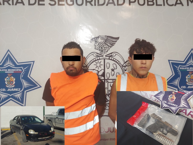 Ciudad Juárez, Chihuahua – Elementos de la Secretaría de Seguridad Pública Municipal arrestaron a Julián A. M. y Jairo David A. R., por su presunta responsabilidad en la comisión de delitos contra la ley federal de armas de fuego y explosivos.