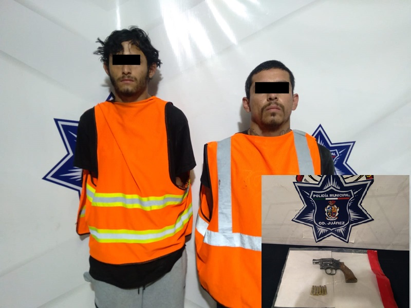 Ciudad Juarez, Chihuahua – Elementos de la Secretaría de Seguridad Pública Municipal arrestaron a Jorge H. B. y Erick M. A., por su presunta responsabilidad en la comisión de delitos contra la ley federal de armas de fuego y explosivos.