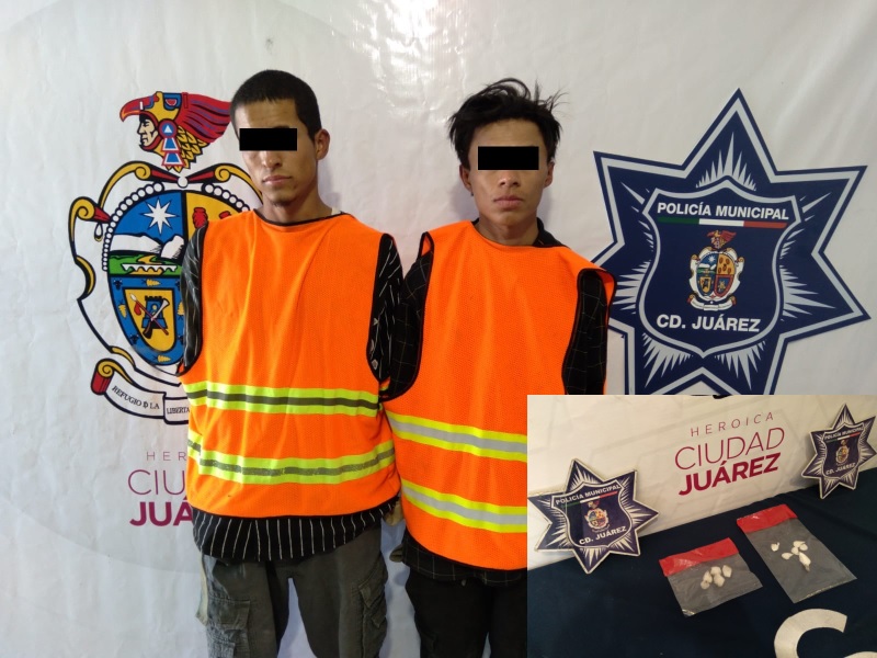 Ciudad Juarez, Chihuahua – Agentes de la Secretaría de Seguridad Pública Municipal arrestaron a Manuel Alberto O. F. y Emilio Emmanuel M. B., por presunta responsabilidad en la comisión de delitos contra la salud, el primero de ellos cuenta con una orden de aprehensión vigente en su contra por el mismo delito.