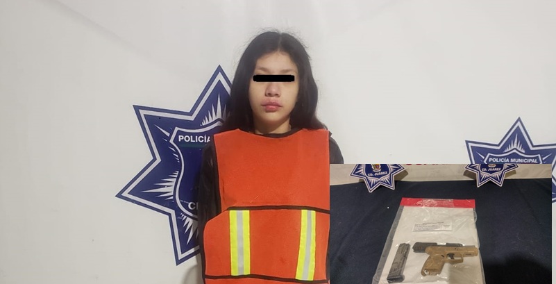 Ciudad Juarez, Chihuahua – Elementos de la Secretaría de Seguridad Pública Municipal arrestaron a Grecia C. C., por su presunta responsabilidad en la comisión de delitos contra la ley federal de armas de fuego y explosivos.