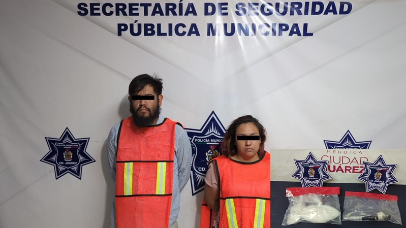 Ciudad Juarez, Chihuahua – Elementos de la Secretaría de Seguridad Pública Municipal adscritos en la Estación de Policía del Distrito Poniente, arrestaron Carlos Antonio G.A. y Beatriz Adriana Z. M., por su presunta responsabilidad en la comisión de delitos contra la salud, incautándoles una importante cantidad de droga sintética que tenía como destino ser comercializada en la ciudad.