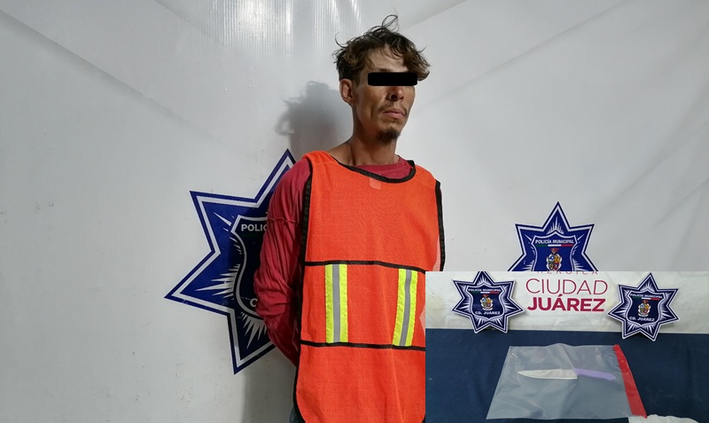 Razón por la cual fue abordado y al realizarle una inspección preventiva, se encontró que portaba en su mano derecha un cuchillo, el cual coincidía con el descrito por la víctima, quedando bajo arresto quien dijo llamarse Jesús Francisco G. T. de 32 años.