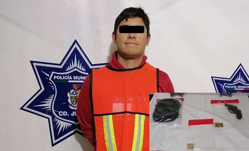 Ciudad Juarez, Chihuahua – Elementos de la Secretaría de Seguridad Pública Municipal arrestaron a Iván Rodrigo A. T., por su presunta responsabilidad en la comisión del delito de robo en grado de tentativa y violación a la ley federal de armas de fuego y explosivos.
