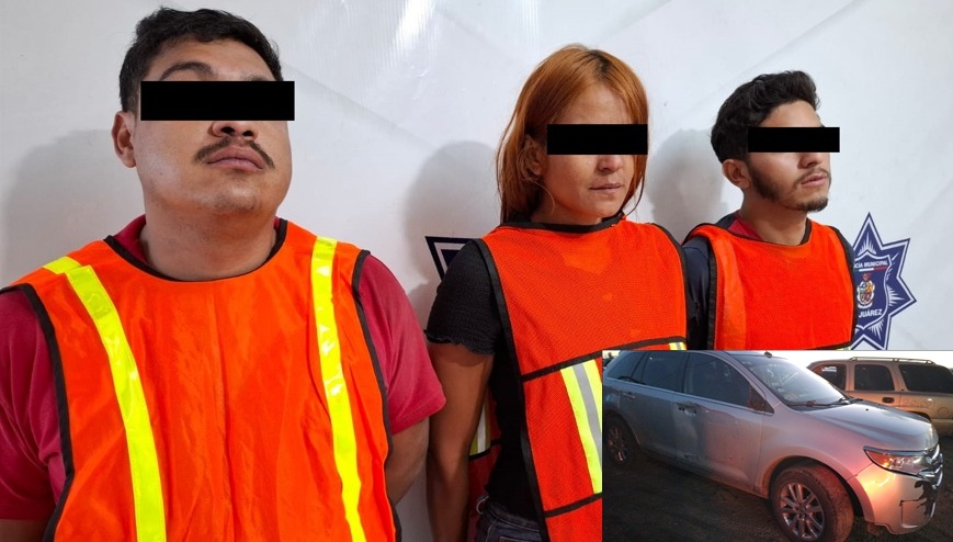 Ciudad Juarez, Chihuahua – Elementos de la Secretaría de Seguridad Pública Municipal arrestaron a Ricardo Isael S. R., José Eduardo S. R. y a Arleth Rebeca G., por su presunta responsabilidad en la comisión del delito de posesión de vehículo con reporte de robo y delitos contra la salud.