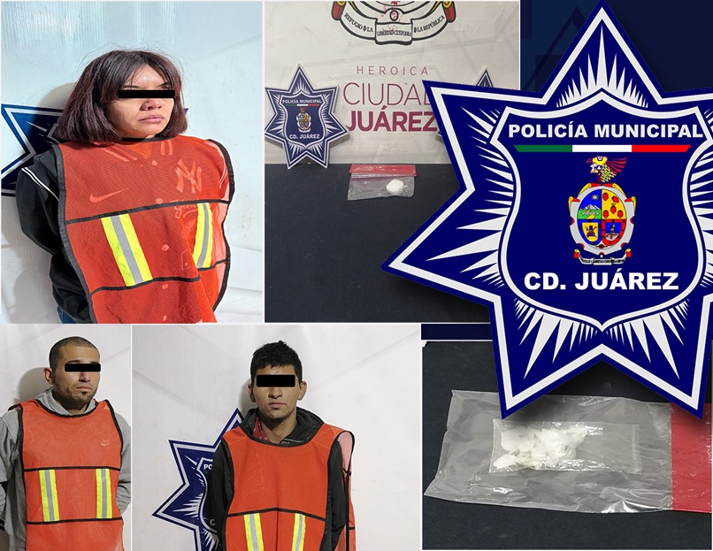 Ciudad Juarez, Chihuahua – Elementos de la Secretaría de Seguridad Pública Municipal arrestaron a tres personas, por su presunta responsabilidad en la comisión de delitos contra la salud en su modalidad de narcomenudeo.
