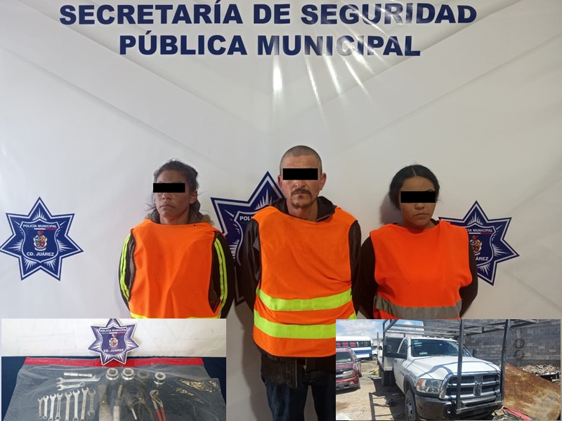 Ciudad Juarez, Chihuahua – Elementos de la Secretaría de Seguridad Pública Municipal arrestaron a Juan Carlos C. R., Karla Joana R. C. y Perla Angélica M. H., por su presunta responsabilidad en la comisión del delito de posesión de vehículo con reporte de robo.