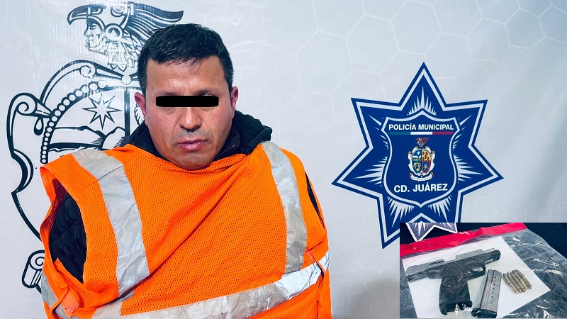 Ciudad Juárez, Chihuahua – Elementos de la Secretaría de Seguridad Pública Municipal arrestaron a Tomás G. C., por su presunta responsabilidad en la comisión de delitos contra la ley federal de armas de fuego y explosivos.