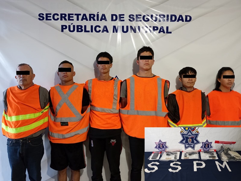 Ciudad Juarez, Chihuahua – Elementos de la Secretaría de Seguridad Pública Municipal arrestaron a Emiliano Nahim P. M., Manuel C. G., Ángel David R. R., José Manuel L. A., William Manuel S. A. y Alondra Michell H. M., por su presunta responsabilidad en la comisión del delito de privación ilegal de la libertad y violación a la ley federal de armas de fuego y explosivos.