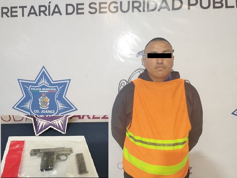 Ciudad Juárez, Chihuahua – Elementos de la Secretaría de Seguridad Pública Municipal realizaron el arresto de Gilberto H. P., por su presunta responsabilidad en la comisión de los delitos de violencia familiar y contra la ley federal de armas de fuego y explosivos.