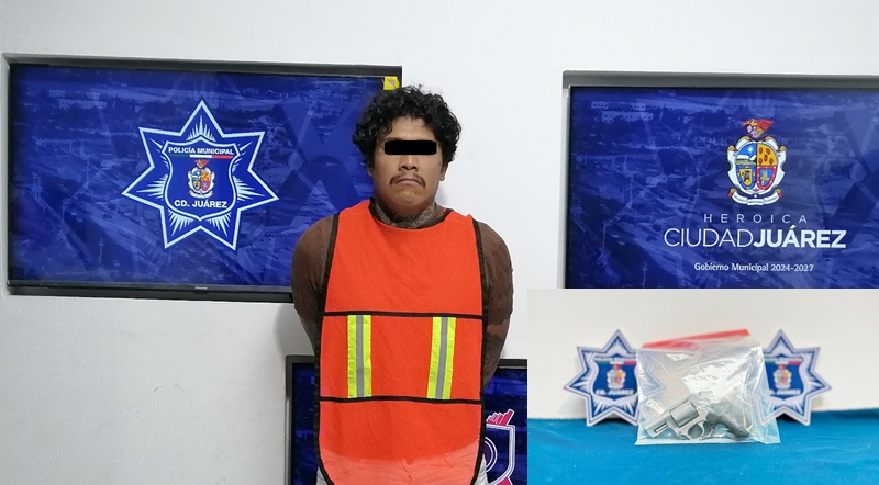 Ciudad Juarez, Chihuahua – Elementos de la Secretaría de Seguridad Pública Municipal adscritos en la Estación de Policía del Distrito Valle, capturaron a Daniel Osvaldo G. T. por su presunta responsabilidad en la comisión del delito de violación a la ley federal de armas de fuego y explosivos.