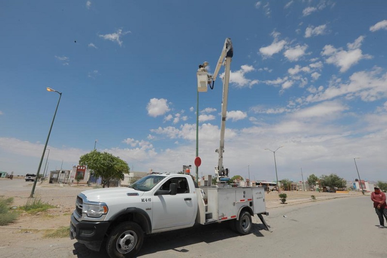 Espitia destacó que en las colonias Anapra y Portal del Roble están realizando trabajos intensivos desde hace un par de semanas, ya que ambos sectores presentaban un gran rezago en cuanto al alumbrado público, por lo que hasta este día se continúan las labores.