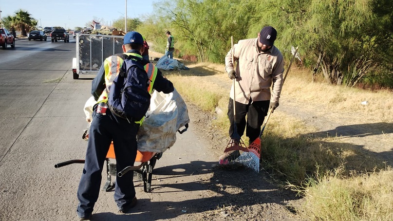 Ciudad Juárez, Chihuahua – Como parte del programa diario de actividades, personal de la Dirección de Limpia trabaja esta semana en la atención y limpieza de diferentes puntos de la ciudad, concentrando labores en la avenida De las Torres y en la entrada a Ciudad Juárez, dio a conocer Gibran Solís Kanahan, titular de la dependencia.