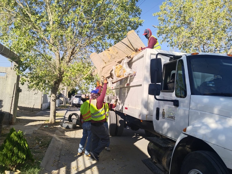 Ciudad Juarez, Chihuahua – Con el objetivo de que tenga una mejor imagen el fraccionamiento Praderas del Sol, personal de la Dirección de Limpia realizó un operativo de limpieza y destilichadero, además de recoger llantas.