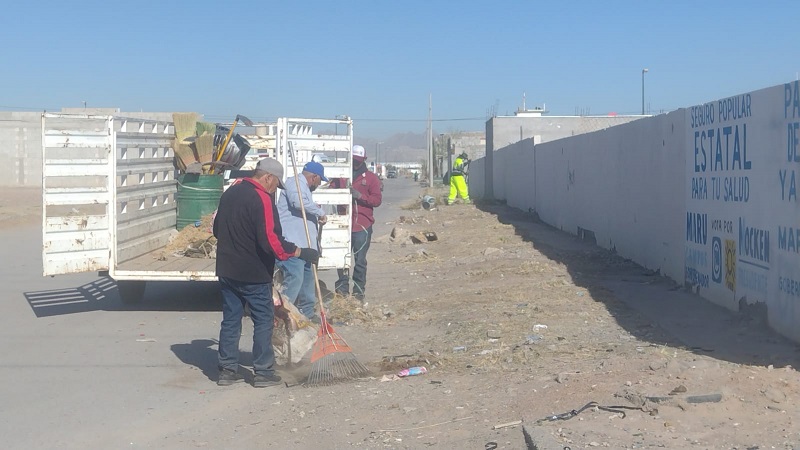 Ciudad Juárez, Chihuahua – En respuesta a las peticiones de ciudadanos que radican en el fraccionamiento Las Haciendas, personal de la Dirección de Limpia trabaja en distintas labores para mejorar las condiciones de parque del sector.