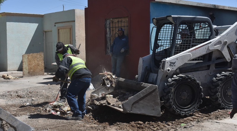Ciudad Juarez, Chihuahua – Personal de la Dirección de Limpia, atendió este jueves una petición vecinal sobre una casa que contaba con un gran acumulamiento de basura y escombro al frente de su banqueta ubicada sobre la calle Rivera del Cañón en el fraccionamiento Riberas del Bravo, dio a conocer Gibran Solís Kanahan, titular de la dependencia.