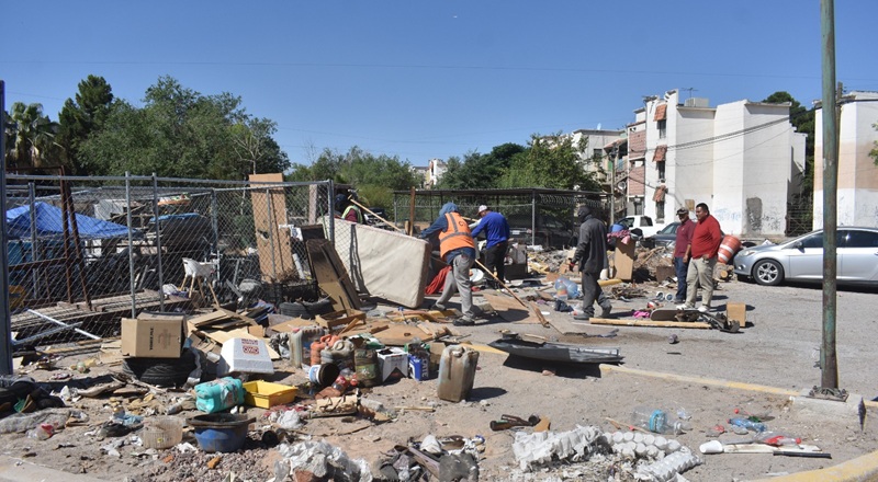 Ciudad Juarez, Chihuahua – La Dirección de Limpia, en coordinación con otras áreas de Servicios Públicos Municipales, llevó a cabo un operativo de limpieza en el fraccionamiento Eco 2000, en atención a un reporte ciudadano sobre acumulación de desechos y tiliches en la zona.