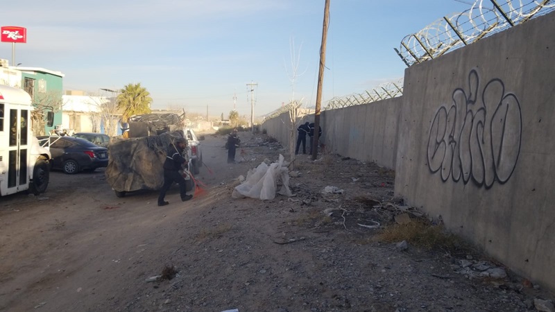 Ciudad Juarez, Chihuahua – Personal de la Dirección de Limpia trabaja de manera simultánea en diferentes puntos de la ciudad como en la Escuela Secundaria Técnica número 3040, en los parques Oriente, Insurgentes y Emiliano Zapata, así como en los Centros Comunitarios Talamás Camandarí, Kilómetro 27 y Riberas del Bravo.