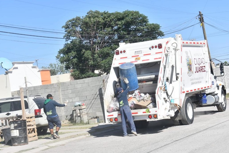 Ciudad Juárez, Chihuahua – En respuesta a los reportes ciudadanos, personal de la Dirección de Limpia atiende diariamente con camiones del municipio la recolección de basura en diversas colonias de la ciudad, ante la falta del servicio por parte de Promotora Ambiental de la Laguna S.A. de C.V. (PASA).