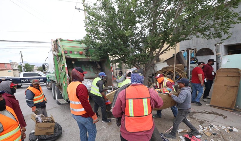 Ciudad Juarez, Chihuahua – Como parte del compromiso por la mejora del entorno urbano y en respuesta directa a una petición ciudadana, dependencias municipales llevaron a cabo un operativo de reordenamiento urbano en una vivienda ubicada en el cruce de las calles Rhodesia y Angola del Infonavit Tecnológico, la cual presentaba una acumulación considerable de residuos de todo tipo.
