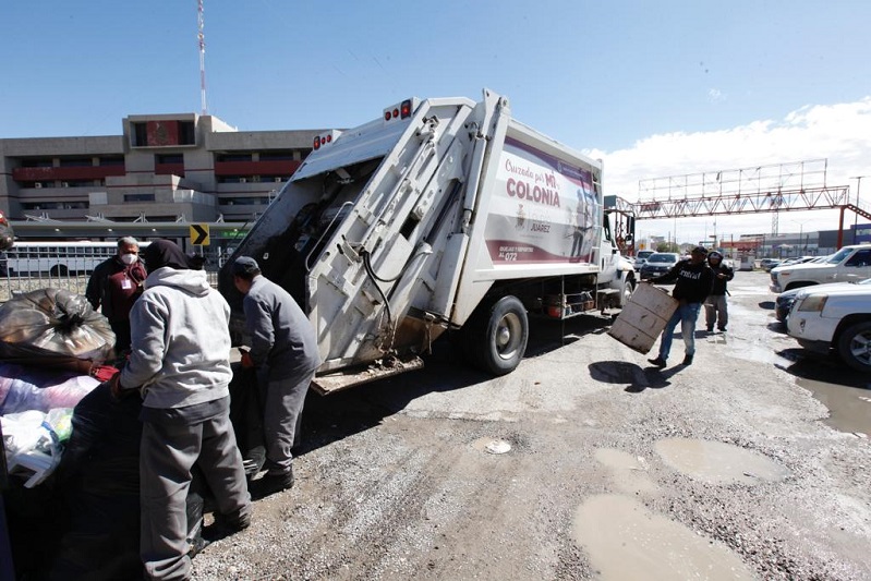 Ciudad Juárez, Chihuahua – Trabajadores de la Dirección de Limpia ampliaron la cobertura de limpieza en la zona Centro de la ciudad, incorporando en sus tareas en las inmediaciones del Centro de Salud Todos Somos Mexicanos, situado en la calle Francisco Villa y Heroico Colegio Militar.