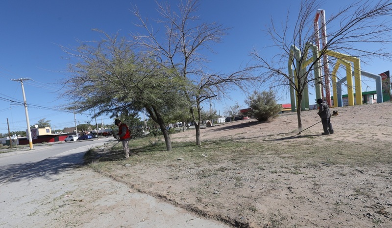 Ciudad Juárez, Chihuahua – El Gobierno Municipal, a través de la Dirección de Parques y Jardines, llevó a cabo labores de mantenimiento en distintos espacios públicos del fraccionamiento Las Haciendas Universidad, como parte de las acciones permanentes para conservar en buen estado las áreas verdes de la ciudad.