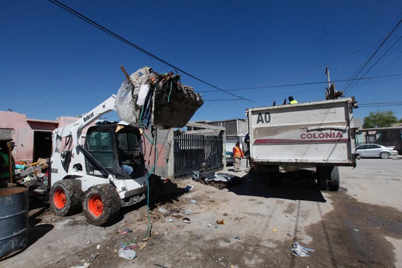 Ciudad Juárez, Chihuahua – Personal operativo de la Dirección de Limpia atendió un reporte ciudadano en el que se dio a conocer que al interior de un domicilio en el fraccionamiento Hacienda Universidad, se encontraba un acumulamiento de basura, lo que ponía en riesgo la salud de los vecinos.