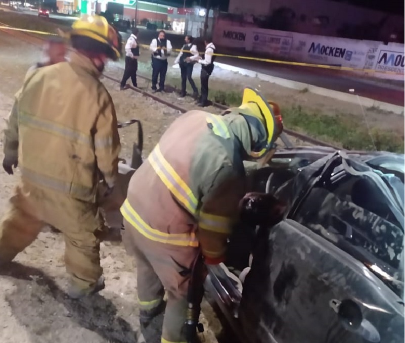 Finalmente auxiliaron para rescatar a una persona sin vida, que se encontraba entre los fierros retorcidos de un vehículo luego se verse involucrado en un accidente vial, en la colonia Oasis Revolución.