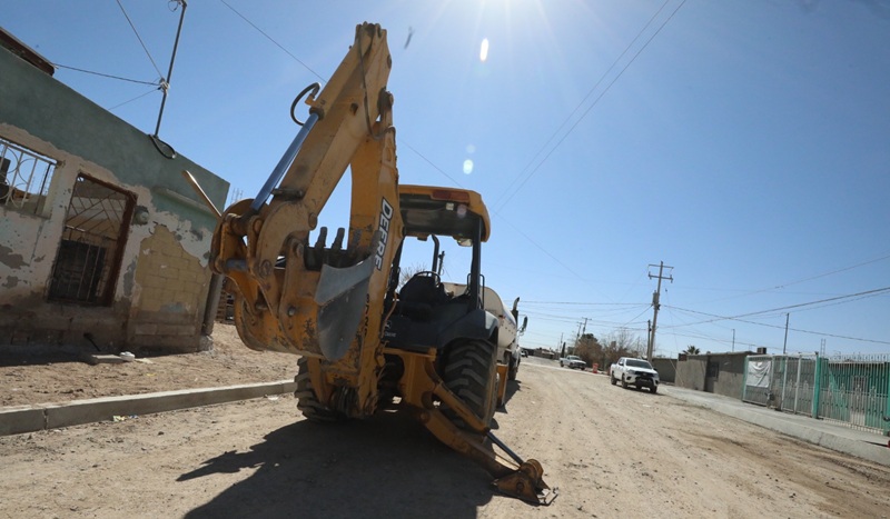 Ciudad Juarez, Chihuahua – La Dirección General de Obras Públicas trabaja en la pavimentación de la calle Lucio Cabañas, en el tramo que comprende de las calles Rodolfo Flores Magón a Enrique Flores Magón, en la colonia Pancho Villa, como parte del programa de mejoramiento de vialidades.
