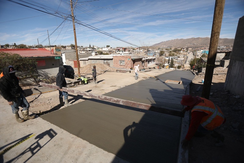 Ciudad Juarez, Chihuahua – La Dirección General de Obras Públicas continúa trabajando en la construcción de la calle Cafeto, ubicada en la colonia Josefa Ortiz de Domínguez, en la cual se lleva un avance notorio del 60 por ciento.