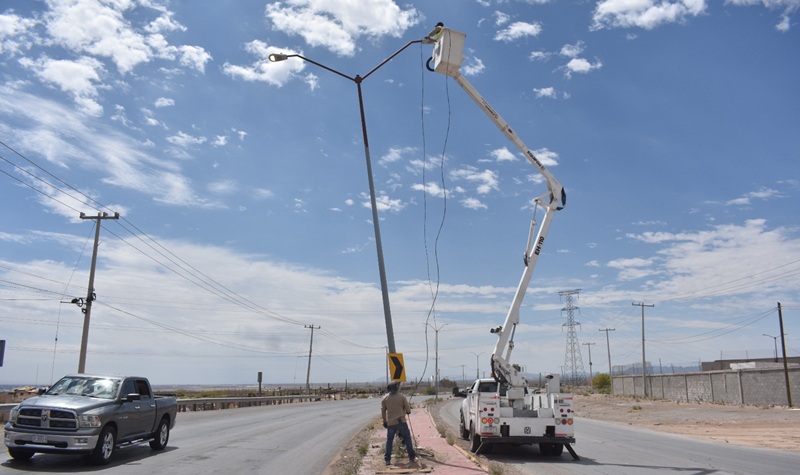 Ciudad Juarez, Chihuahua – La Dirección de Alumbrado Público continúa con los trabajos de rehabilitación e instalación de infraestructura eléctrica en la carretera a Casas Grandes, una vialidad prioritaria por su alto flujo vehicular y frecuencia de accidentes.