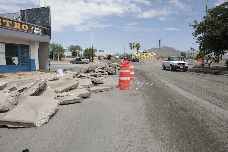 La Dirección General de Obras Públicas continúa trabajando con el proyecto de rehabilitación de imagen urbana del puente Carlos Villarreal, el cual incluye las labores para repavimentar la avenida Abraham Lincoln.