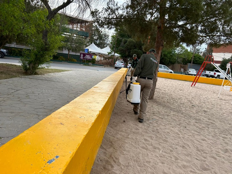 Ciudad Juarez, Chihuahua – Este día la brigada de fumigación de la Dirección de Ecología llevó a cabo la desinfección en el parque Borunda, uno de los lugares más frecuentados por los habitantes de Ciudad Juárez, quienes disfrutan de paseos en familia y con sus mascotas.