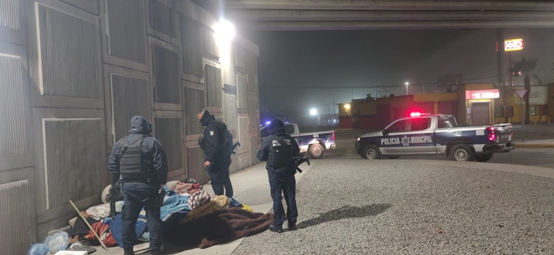 Ciudad Juarez, Chihuahua – Agentes de la Policía Municipal realizaron 18 traslados de diferentes puntos de la ciudad para resguardar a personas de las bajas temperaturas.