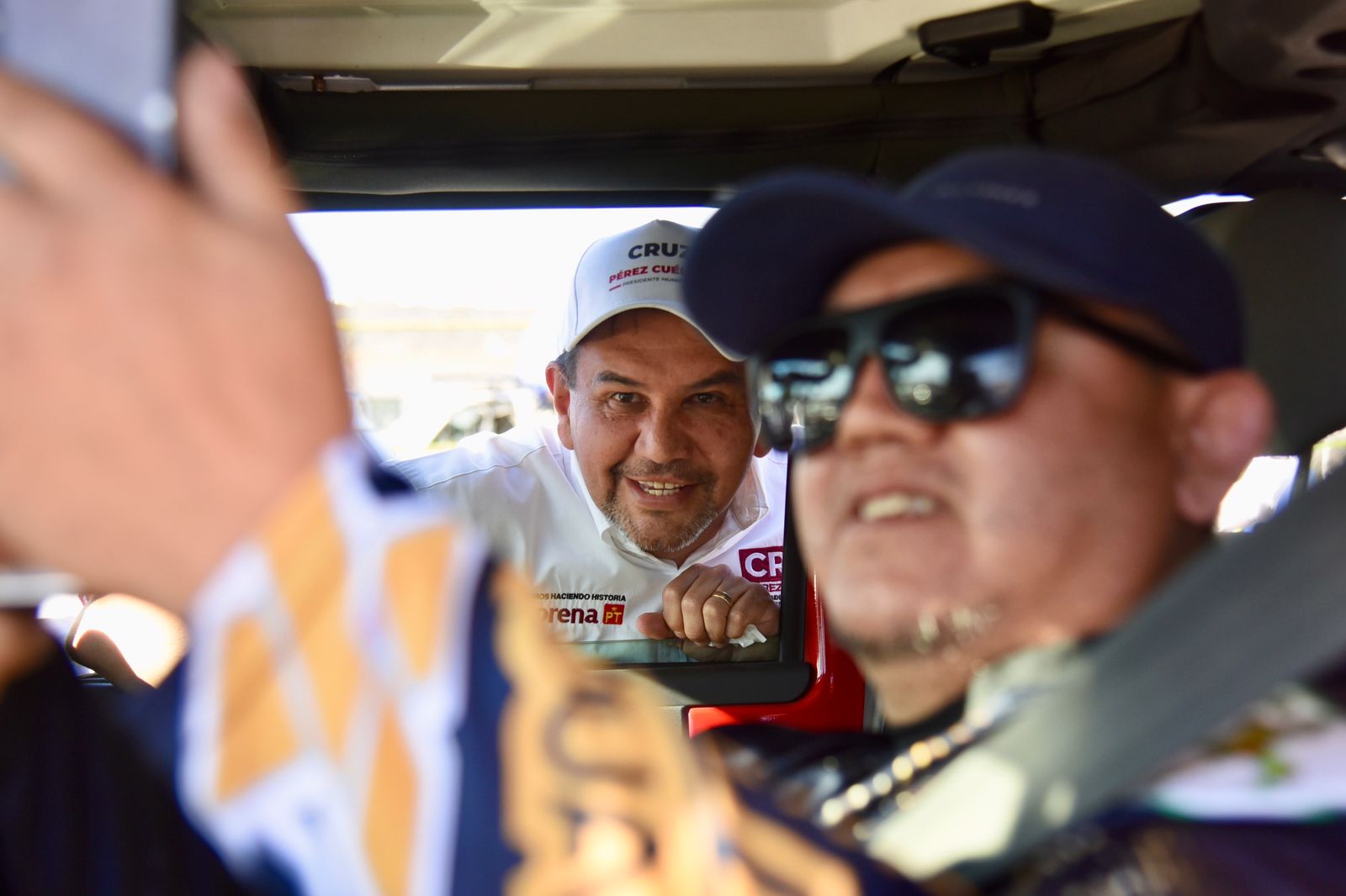 Pérez Cuéllar, interactuó con los ciudadanos, invitándolos a votar por su proyecto, y la respuesta ha sido ampliamente positiva, reflejada en la colocación de calcomanías en los vehículos y en las fotografías junto al candidato.