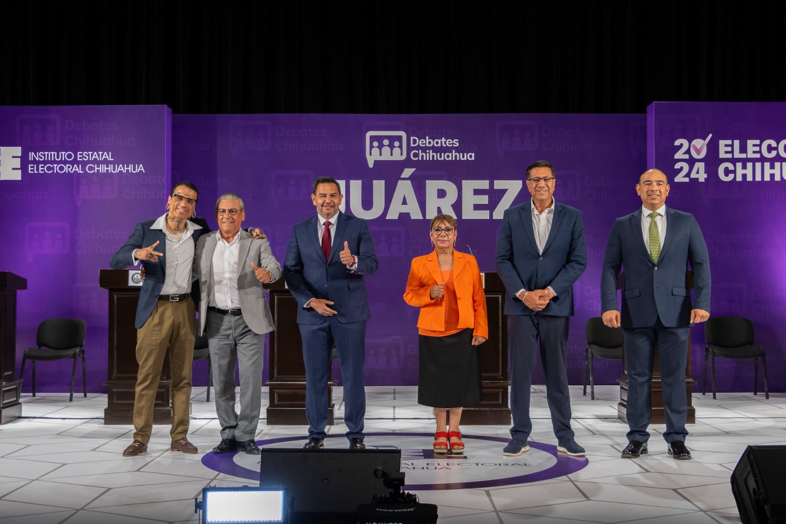 Ciudad Juárez, Chihuahua.- El candidato a la presidencia Municipal de Ciudad Juárez postulado por la coalición “Sigamos Haciendo Historia por Chihuahua”, Cruz Pérez Cuéllar, participó en el “Debate 2024” organizado por el Instituto Estatal Electoral.