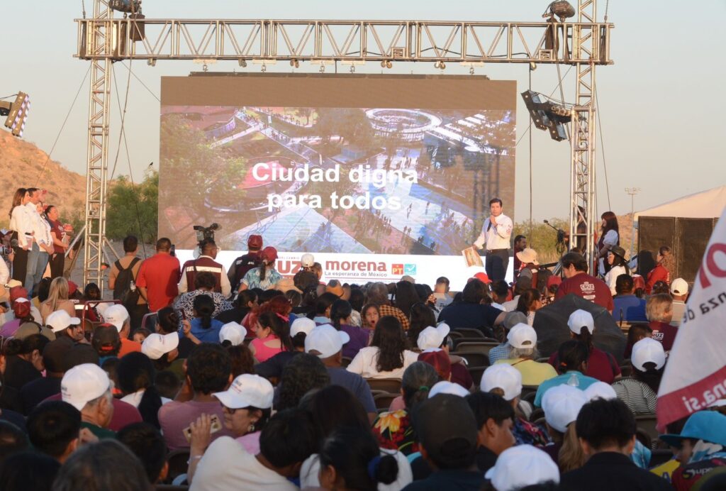 Ciudad Juárez, Chihuahua.- El candidato a la presidencia municipal de ciudad Juárez, Cruz Pérez Cuéllar postulado por la coalición “Sigamos Haciendo Historia por Chihuahua”, ante los vecinos presentó el proyecto de la construcción del Parque de Anapra.